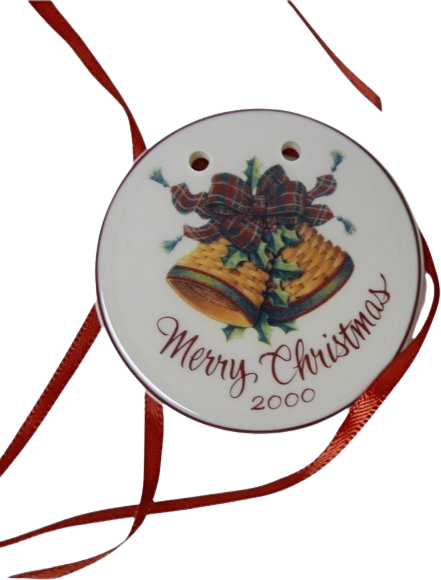 Use this lovely Longaberger accessory to trim your basket. It comes in new condition, size OS, and is like new in its original packaging. Just note that the box has a handwritten name in pencil. The design includes 2 woven baskets with plaid bows, green tassels and hollies, along with 2 original satin ribbons. When using, make sure not to pull too hard on the ribbons or tassels. To maintain, store it in a dry place away from direct sunlight. This item was made in the USA in 2000 for a Merry Christmas touch.
