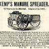 This is an original 1895 black and white print ad for the manure spreader device that was made by the Kemp & Burpee Manufacturing Company.