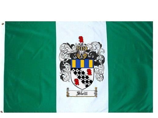 Steill Family Crest Flag / Coat of Arms Flag. You will receive a high quality 3′ x 5′ Polyester flag with two brass grommets. Proudly display your family heritage with this flag, or hang as a banner on a wall. Our flags make great gifts for birthdays, weddings, anniversaries, fathers day, mothers day, groomsmen gifts, and any other occasion